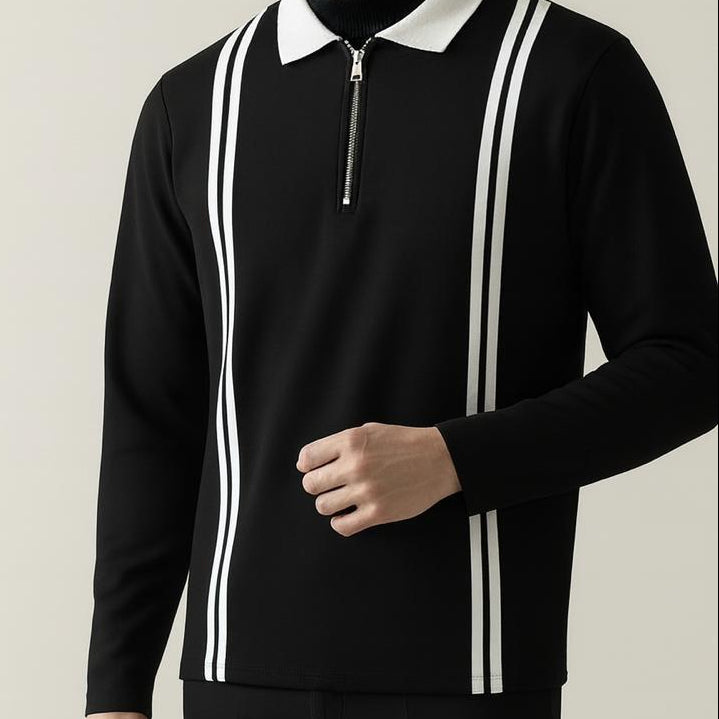 Elevate your winter look with our Old Money Stripe Zipper Polo Sweat.